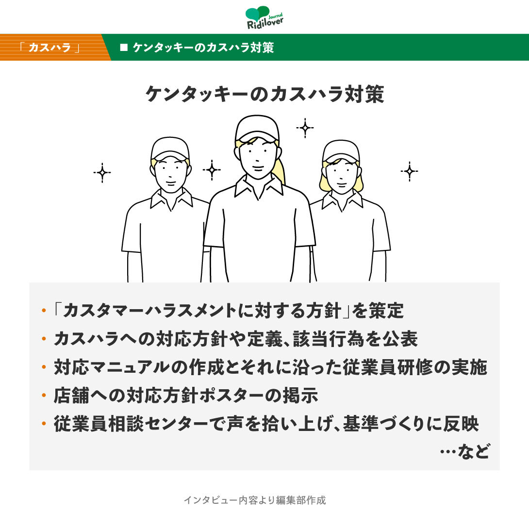 2025年6月、カスハラ対策法(労働施策総合推進法等の一部を改正する法律)が成立し(※)、事業主には防止のための雇用管理上の措置が義務化されることとなった。しかし、ケンタッキーのように積極的に取り組みを進めている企業は少数派だ。